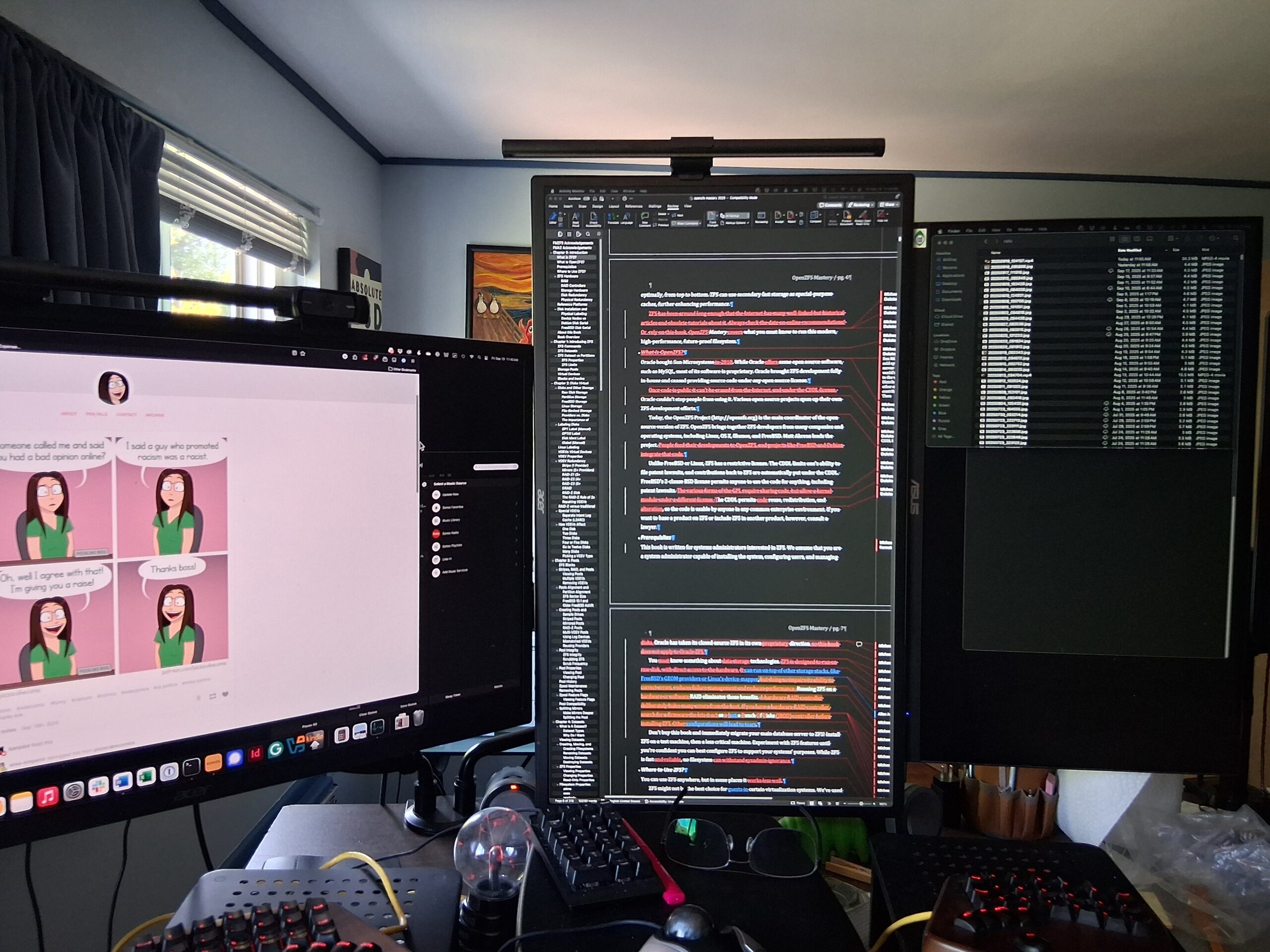 But we do have a manuscript for OpenZFS Mastery! Well, pieces of it. It’s basically the first edition FreeBSD ZFS books slammed together, along with copious notes from Allan and myself on what needs to be changed. It’s essentially a skeleton that we need to add flesh to. Covering Debian as well as FreeBSD means restructuring most of the book. Here’s one page of the introduction, with the changes in red.